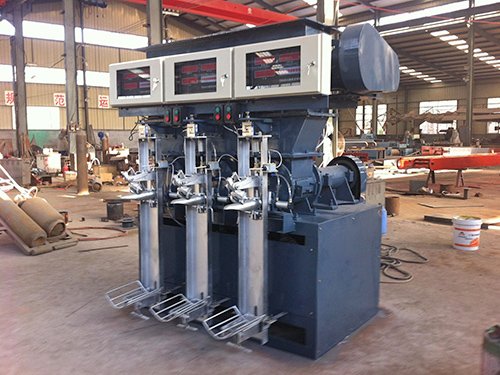 该机使用空压机、电磁阀和气缸等气动元件,通过机、电、气一体化实现包装袋压紧、松开、自动闭出灰、袋满掉袋等自动化功能。本产品设计新颖,结构独特,性能稳定,密封性好,装袋能力,自动化程度高,操作简单,维修费用低,生产过程仅需人工插袋,称量机构和装袋数量有微机控,计量准确,各出灰嘴无漏灰现象,袋重在供料正常的情况下,保证能满足厂家需求。在厂家产销,尤其是火车外运,突击装袋工作中,能充分发挥它装袋能力强的优势,可有效缩短装车时间。